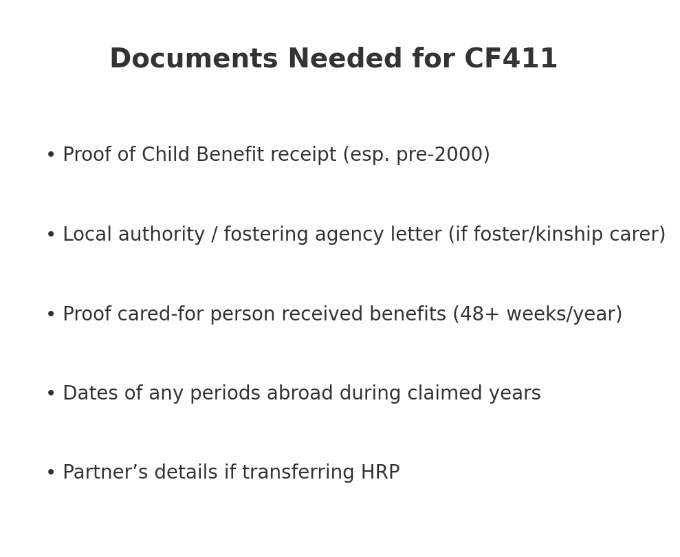 - Proof of Child Benefit receipt (particularly pre-2000 claims).