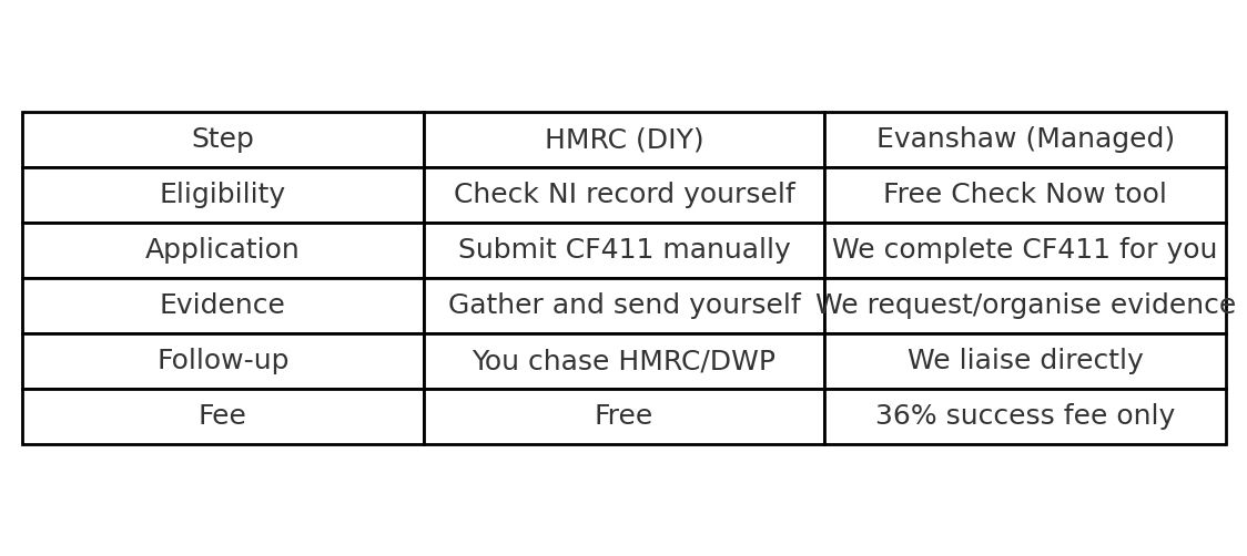 📌 **Tip:** While you can check your record directly on [GOV.UK](https://www.gov.uk/check-national-insurance-record), Evanshaw can handle the whole process for you — from paperwork to HMRC/DWP follow-up. Start here: [Check Now](https://evanshaw.co.uk/carer/check-now/)