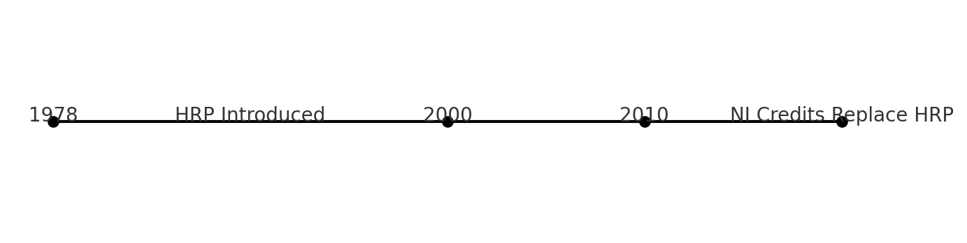 A: HRP covered 1978–2010. From 2010, credits replaced it.