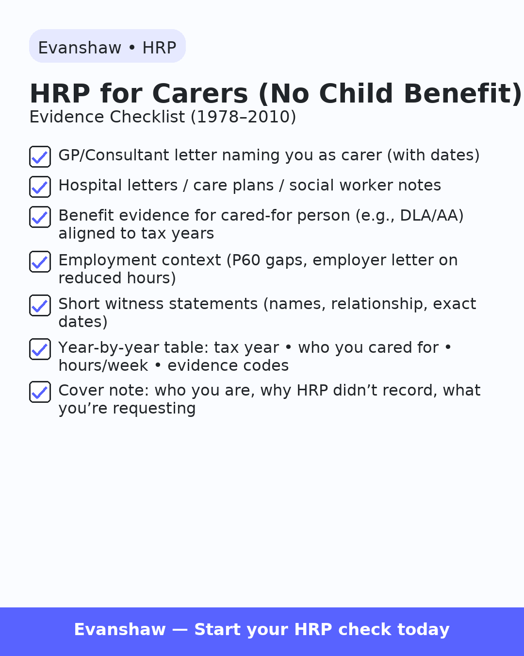 HRP for Carers Without Child Benefit: What Counts as Evidence