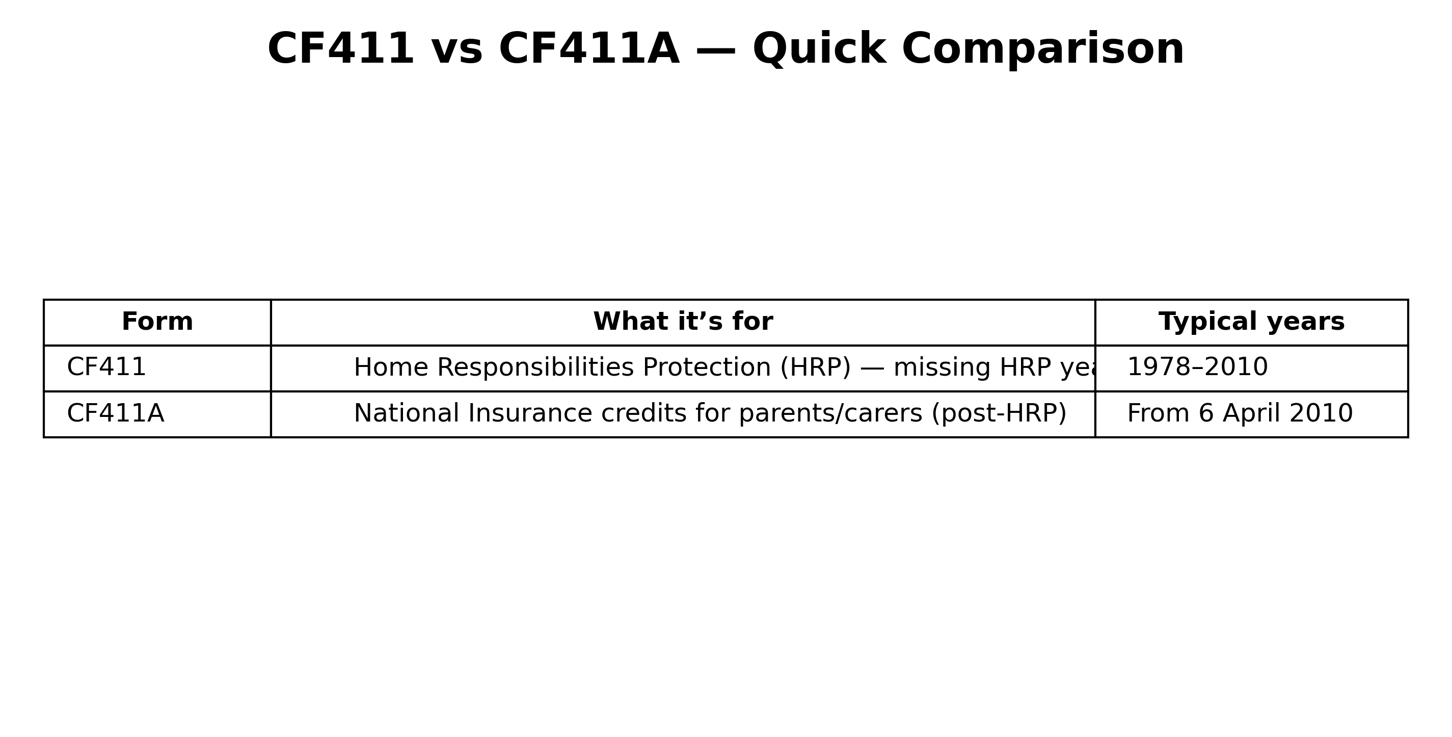 - If the issue is after 6 April 2010 → you’re in NI credits territory → CF411A (if you meet the CF411A rules).