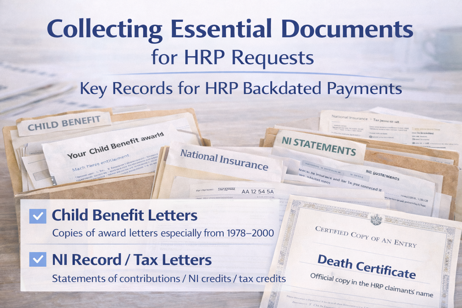 Old Child Benefit letters are helpful, but they are not the only way to support a claim. Useful alternatives can include bank statements showing Child Benefit payments, letters from HMRC, school or GP letters that confirm the child lived with the claimant, and documents that support names and addresses during the relevant years. The key is to give the DWP/HMRC enough to match the person, the child, and the timeframe.